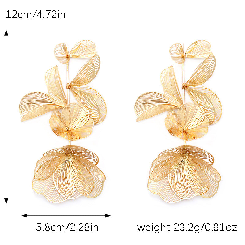 Retro Palace Style Golden Hollow Three-dimensional Flower Earrings