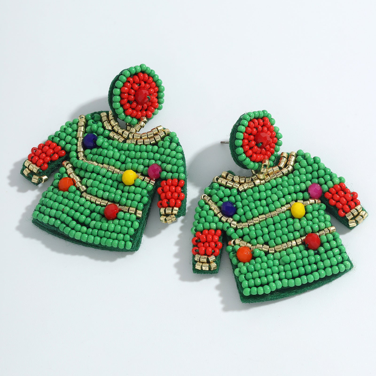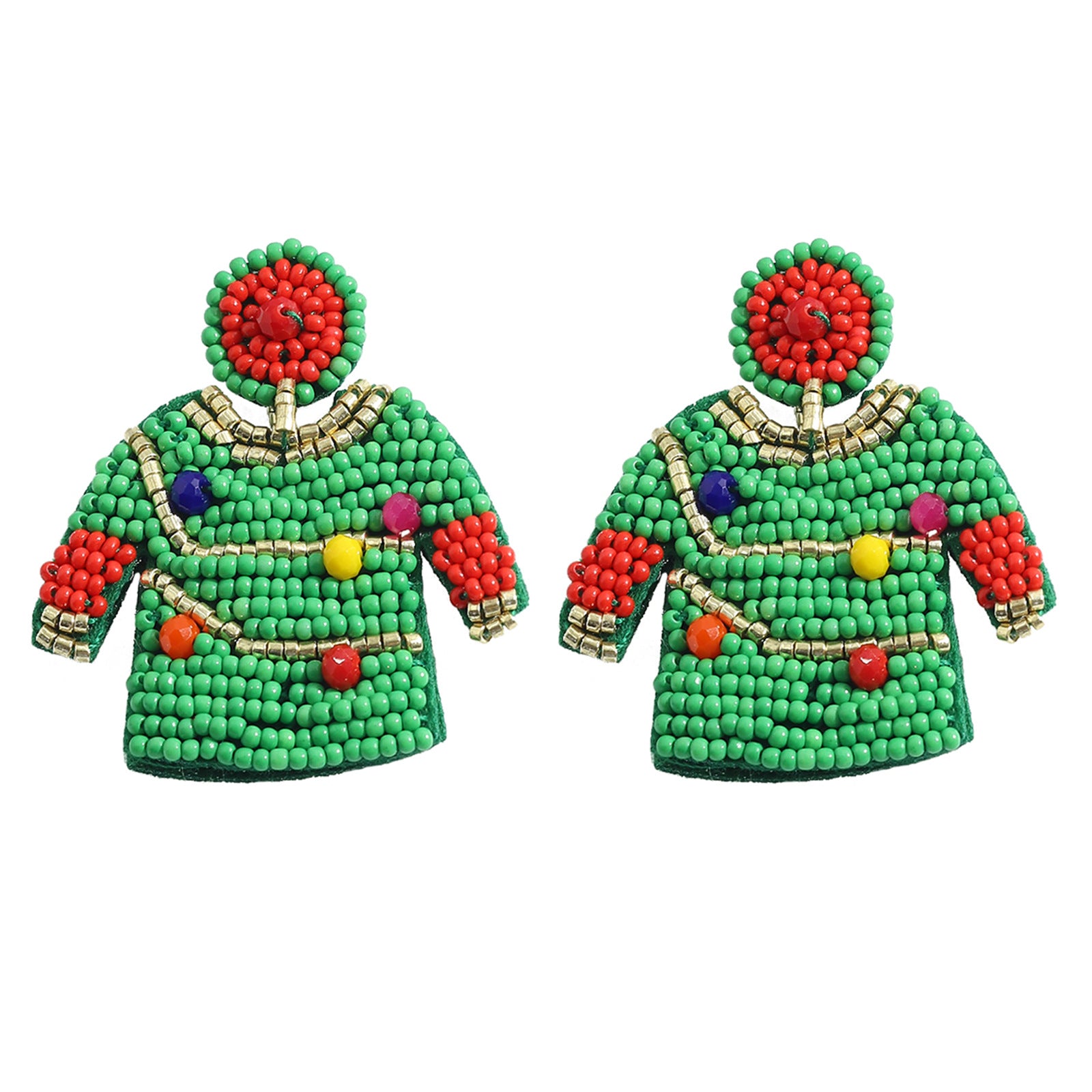 Rice Bead Color Christmas Handwoven Lovely Stud Earrings