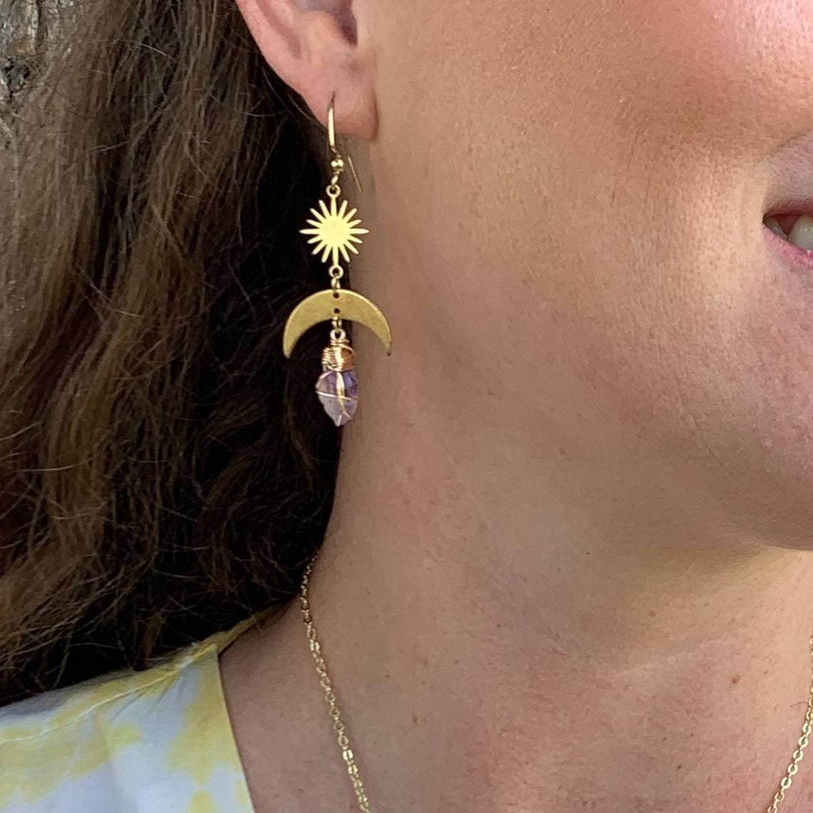 Rising Sun Moon Amethyst Witch Earrings