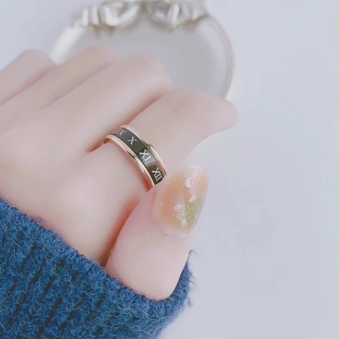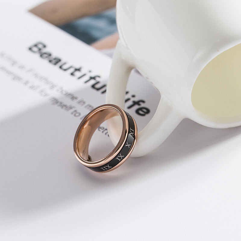 Roman Numerals Turnable Wide Plate Stainless Steel Ring