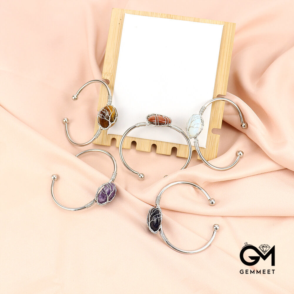 Round Crystal Silver Wire Winding Bracelet