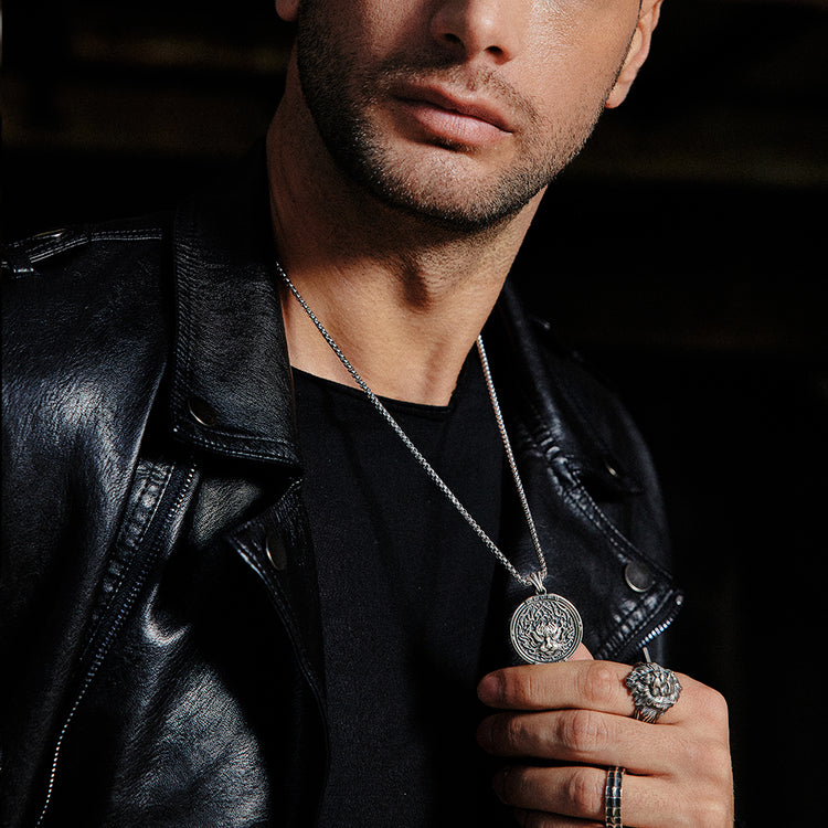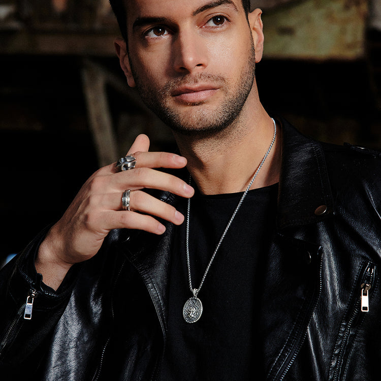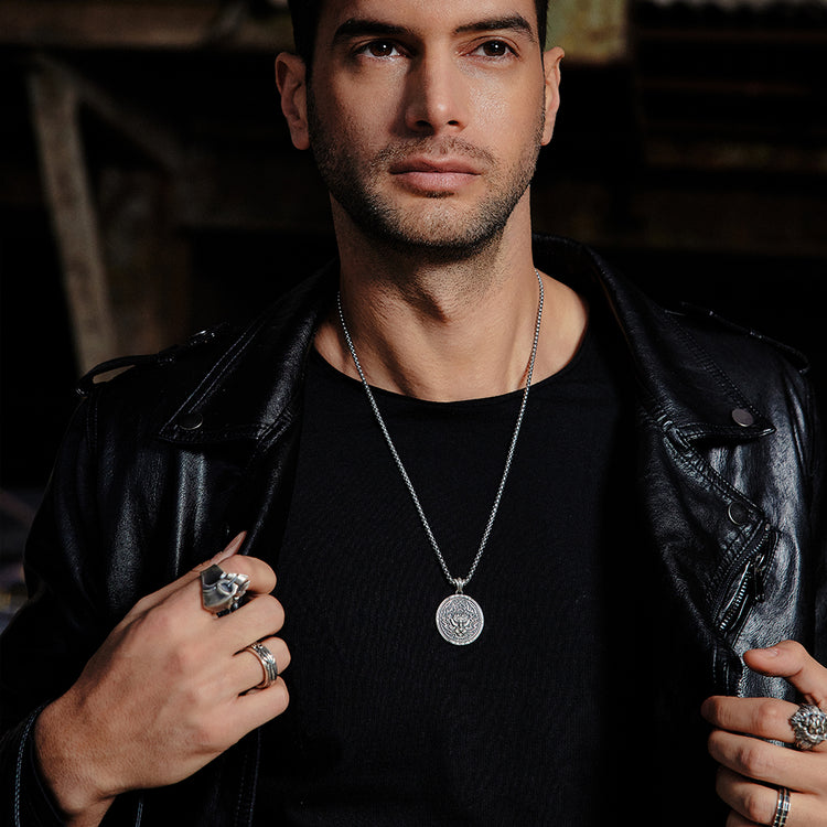 Round Flame Tiger Head Sterling Silver Pendants Necklace