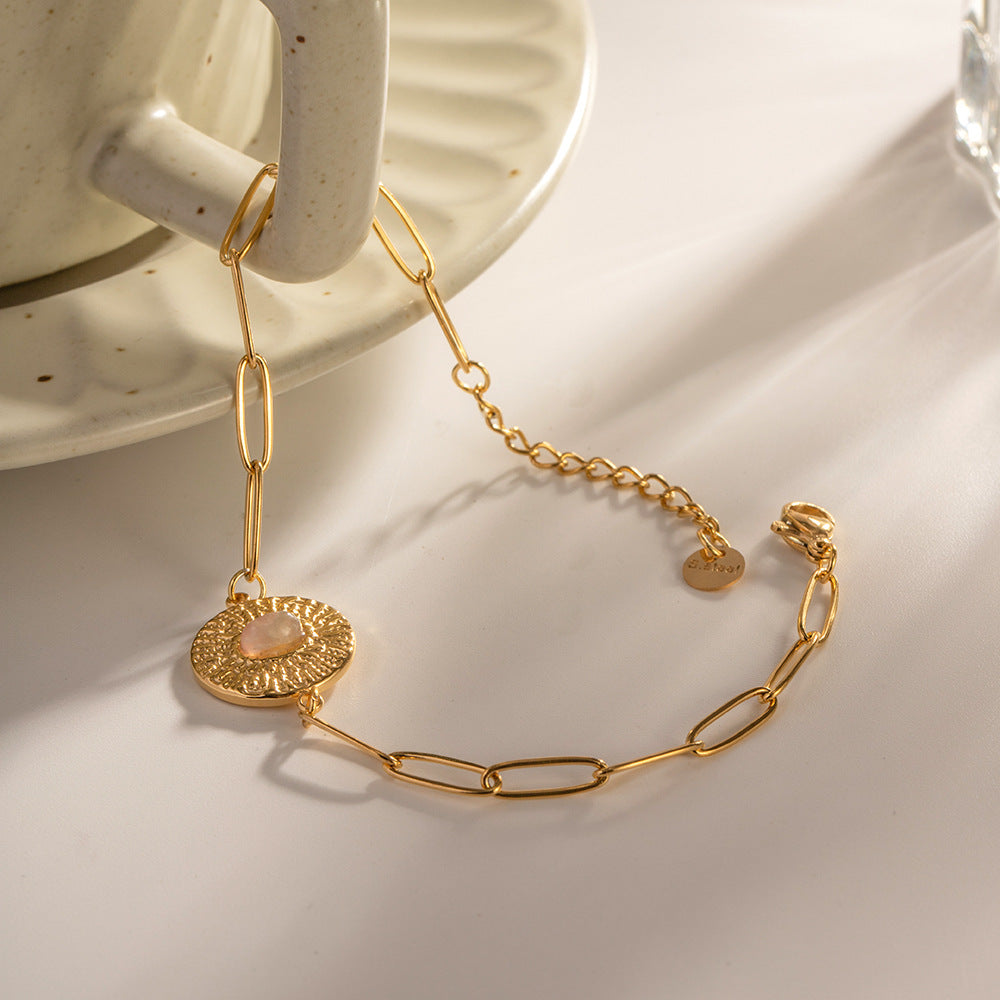 Round Stainless Steel Bracelet with Oval Stone Cross