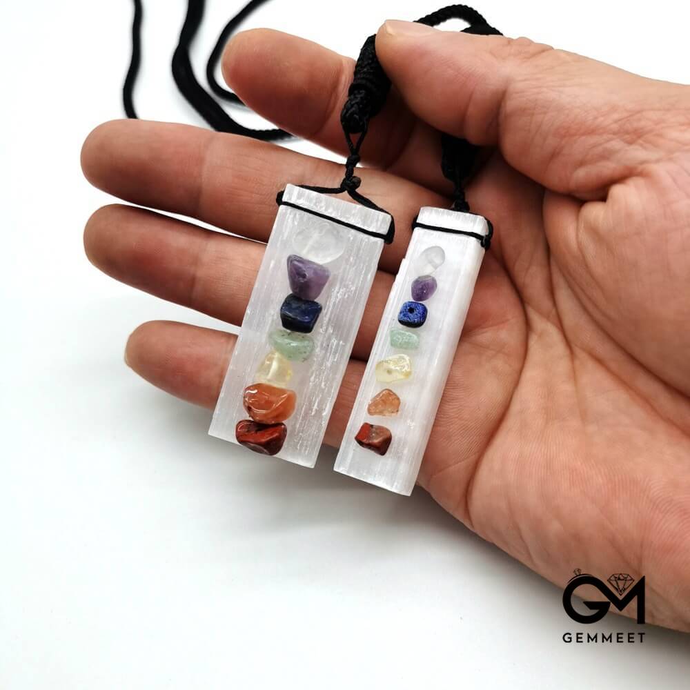Rubble Crystal Gypsum Stone Black Rope Necklace
