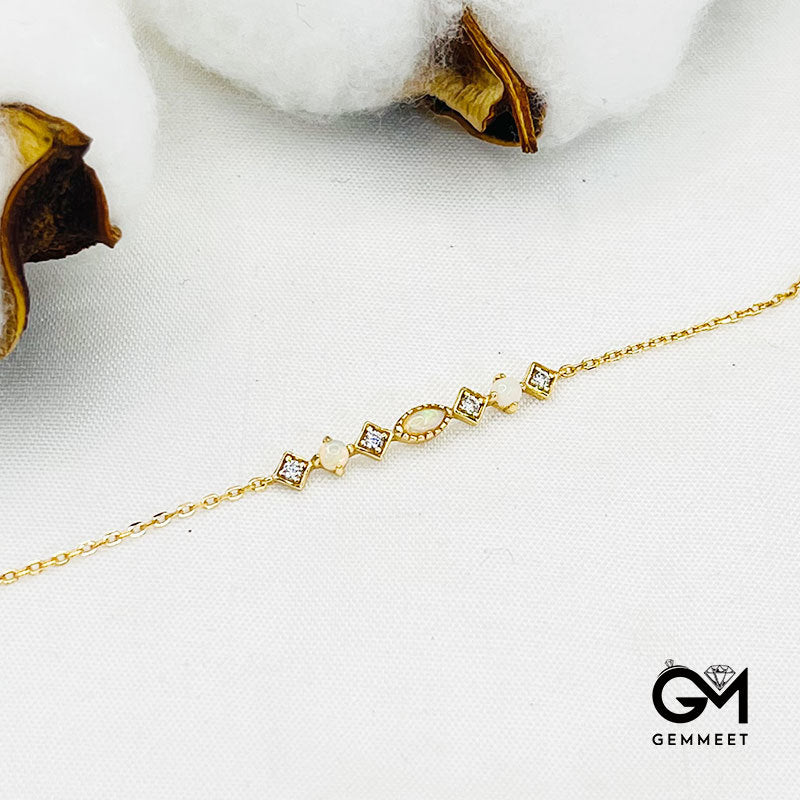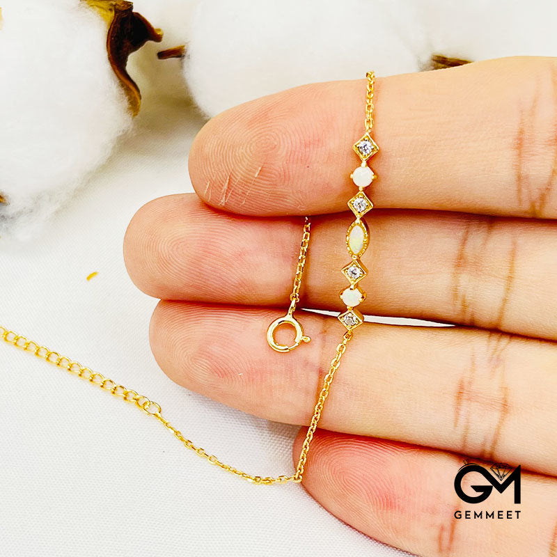 S925 Silver Rhombus Australian Opal Bracelet
