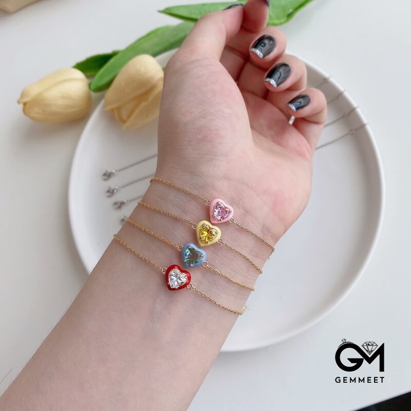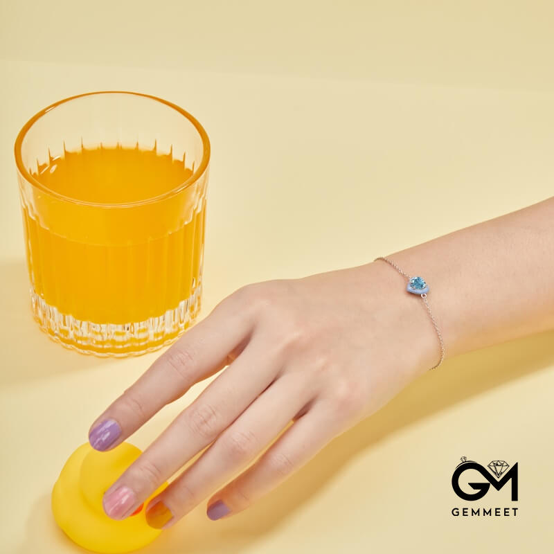 S925 Sterling Silver Blue Heart Drop Glue Blue Heart Bracelet