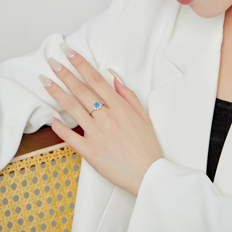 S925 Sterling Silver Blue Heart-shaped Opal Ring