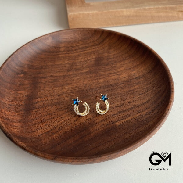 S925 Sterling Silver Blue Pentagram Zircon Earrings