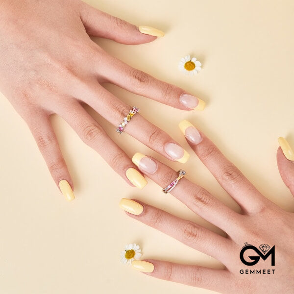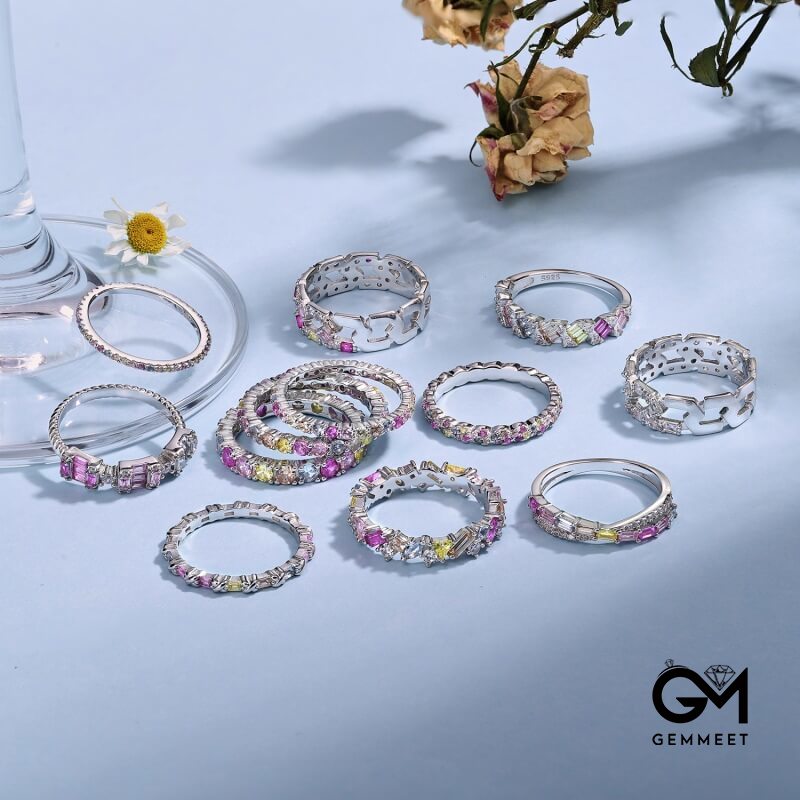 S925 Sterling Silver Colored Triangular Zircon Ring