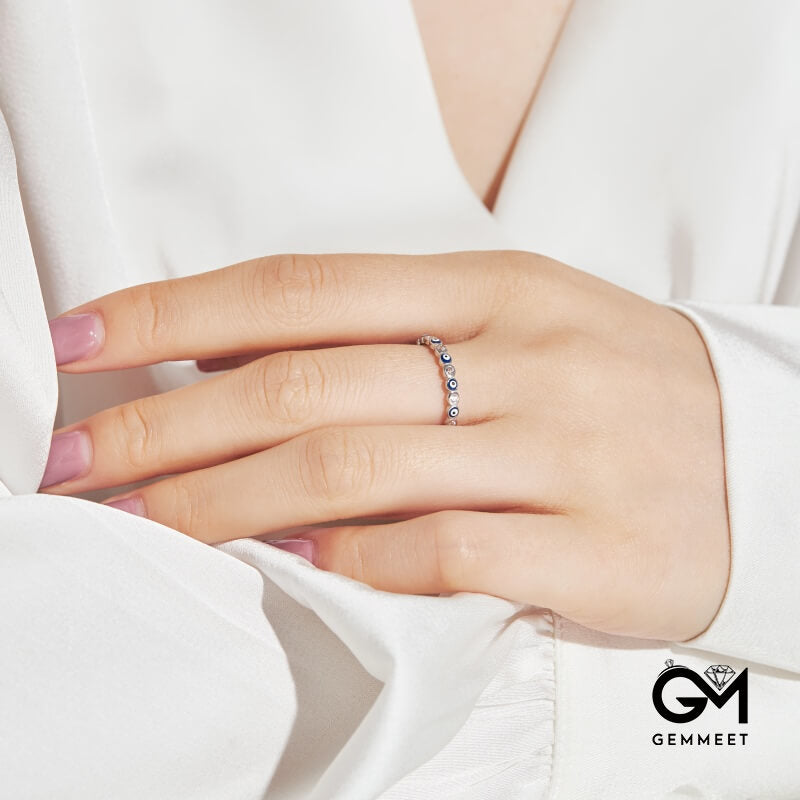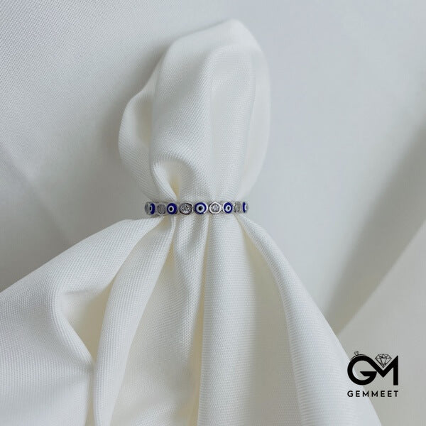 S925 Sterling Silver Devil's Eye Drop Rubber Round Zircon Ring