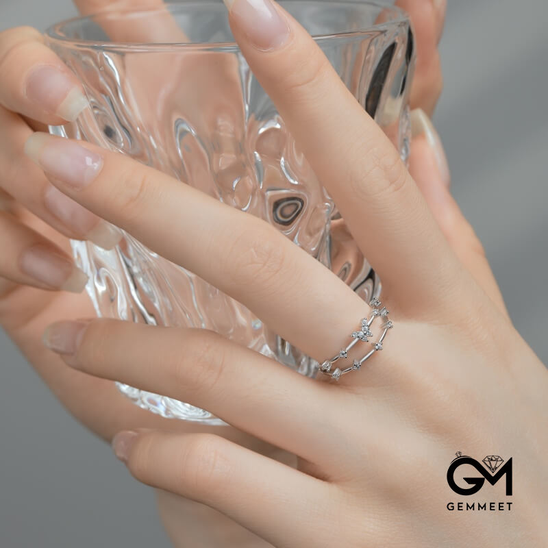 S925 Sterling Silver Double Small Zircon Butterfly Ring