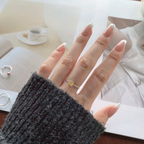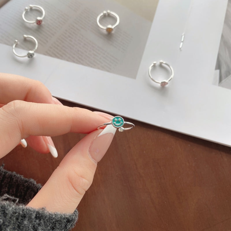 S925 sterling Silver Dripping Smiley Ring