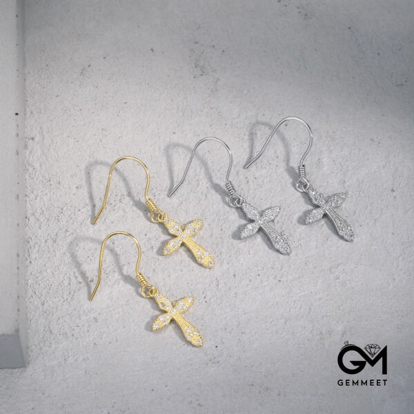 S925 Sterling Silver Full Star Zircon Cross Earrings