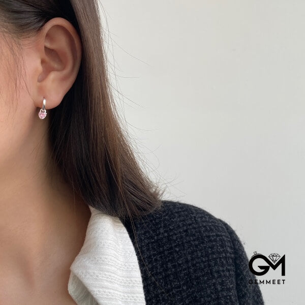 S925 Sterling Silver Girl Heart Powder Zircon Love Earrings