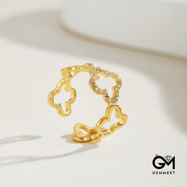 S925 Sterling Silver Hollow Design Four-leaf Clover Flower Ring
