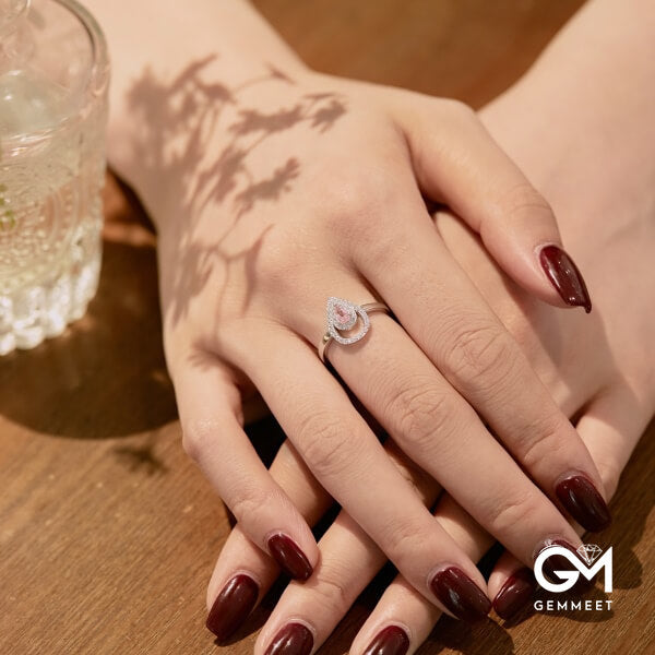 S925 Sterling Silver Hollow Pink Water Drop Zircon Ring