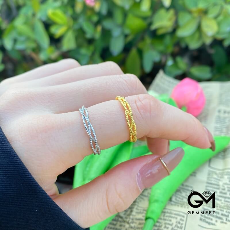 S925 Sterling Silver Irregular Multilayer Twist Open Ring
