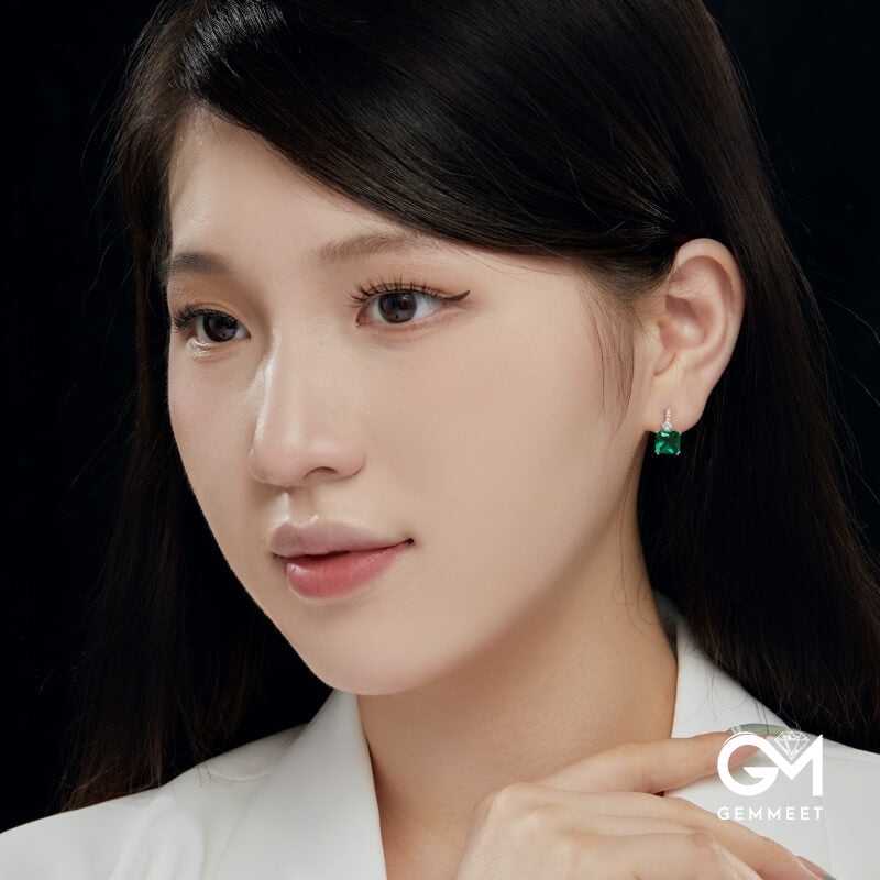 S925 Sterling Silver Niche Green Square Zircon Earrings