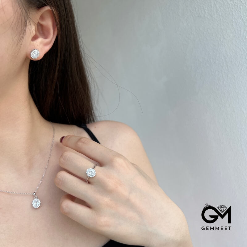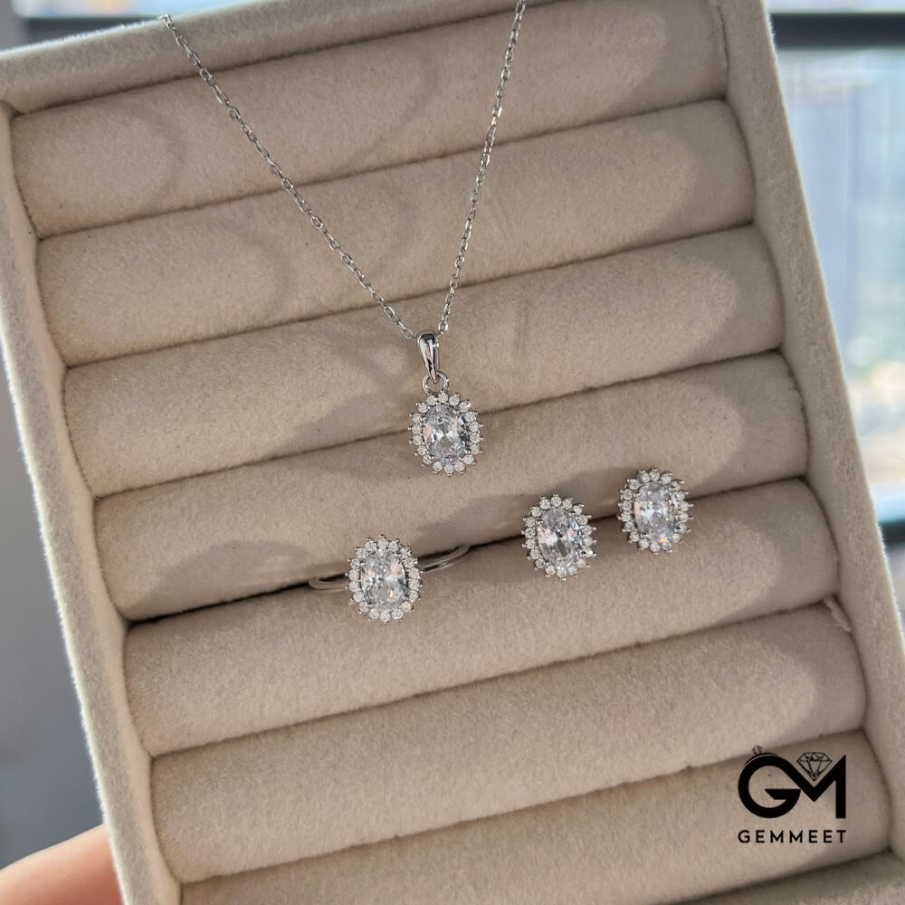 S925 Sterling Silver Oval Zircon Sun Earrings