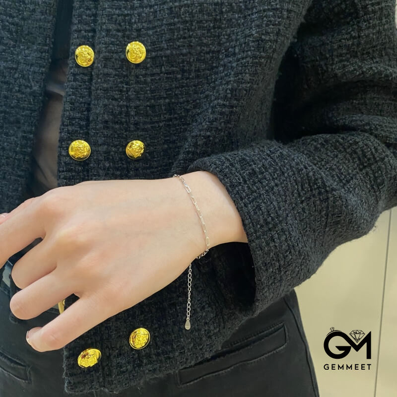 S925 Sterling Silver Paper Clip Simple Chain Bracelet