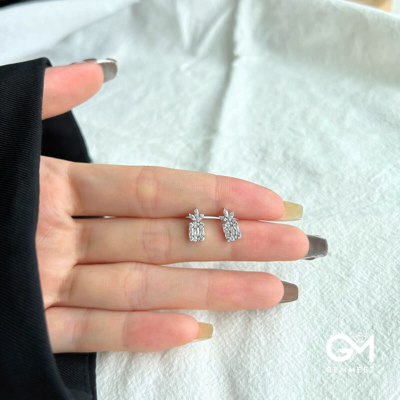 S925 Sterling Silver Pineapple Sparkle Stud Earrings