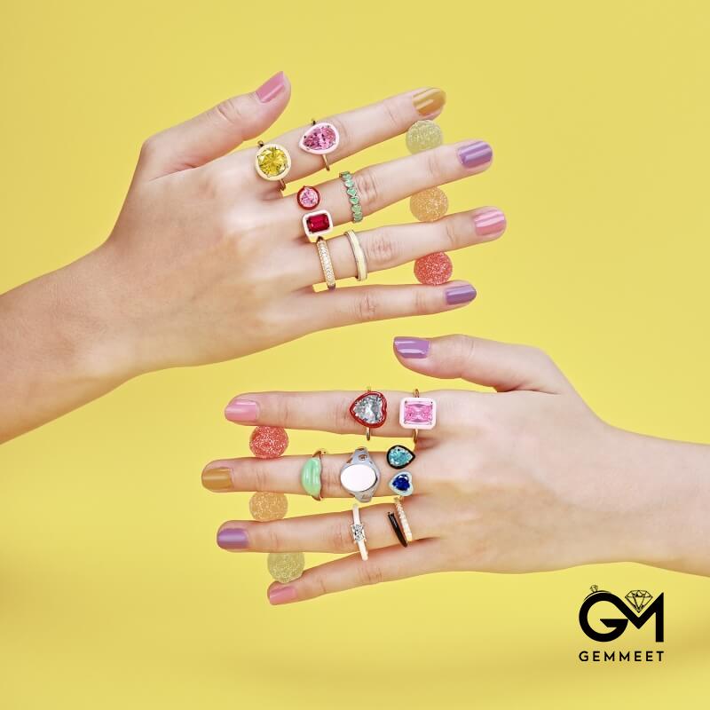S925 Sterling Silver Pink Drip Ring