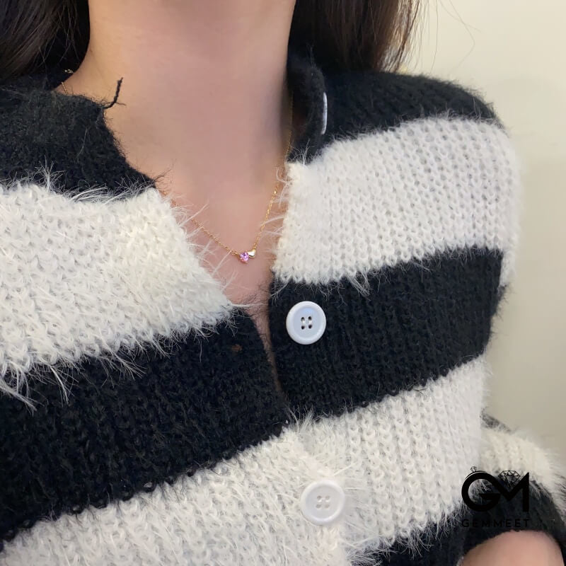 S925 Sterling Silver Pink Zircon Love Thin Necklace