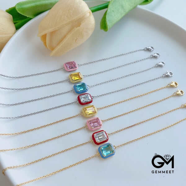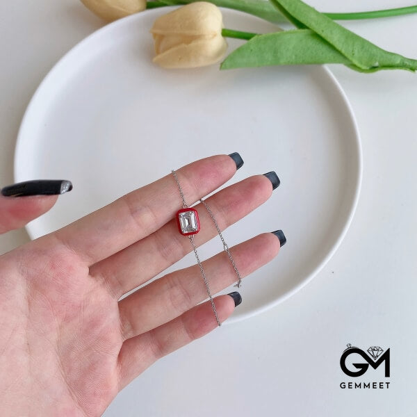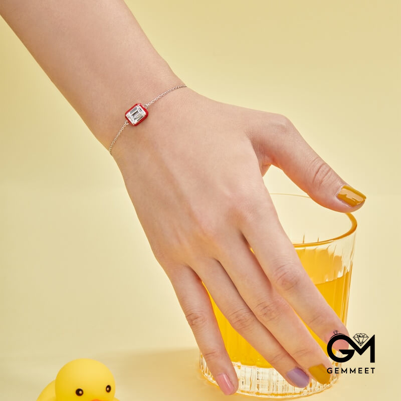 S925 Sterling Silver Red Rubber Drop Rectangular Zircon Bracelet