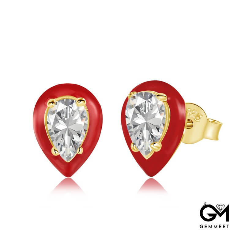 S925 Sterling Silver Red Water Drop Rubber Earrings