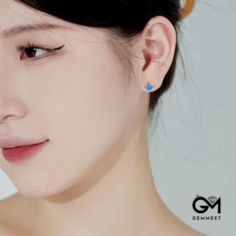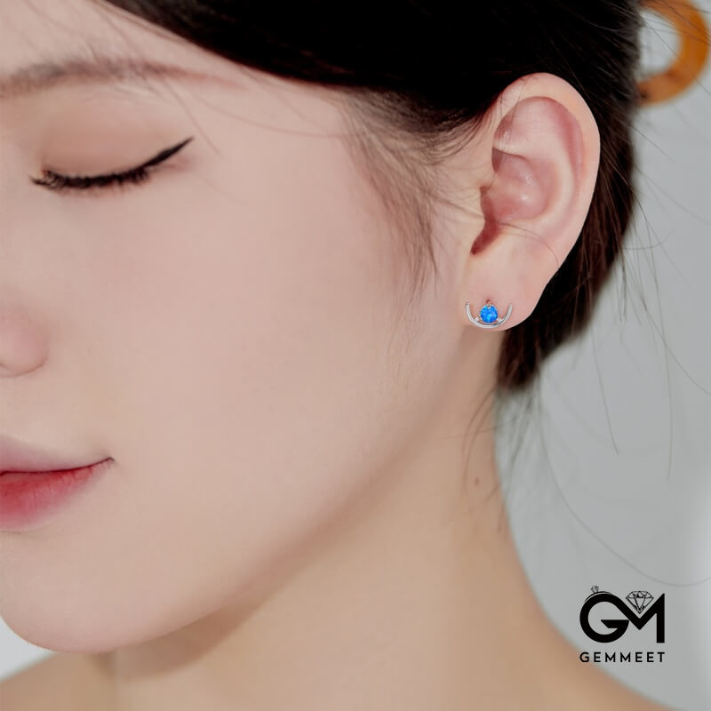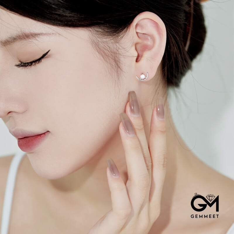 S925 Sterling Silver Round Opal Half-circle Crescent Earrings