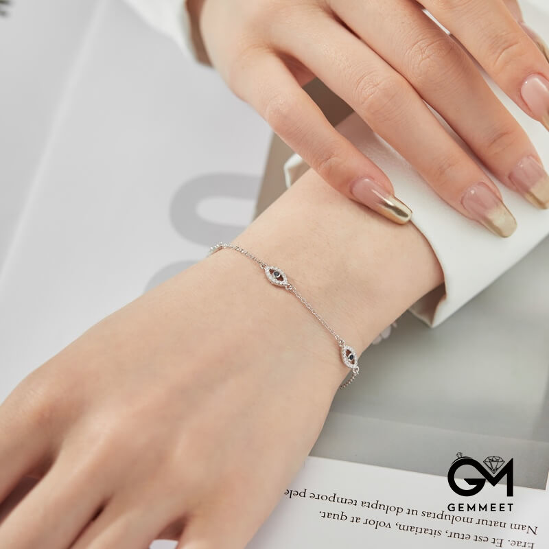 S925 Sterling Silver White Blue Zircon Devil's Eye Bracelet