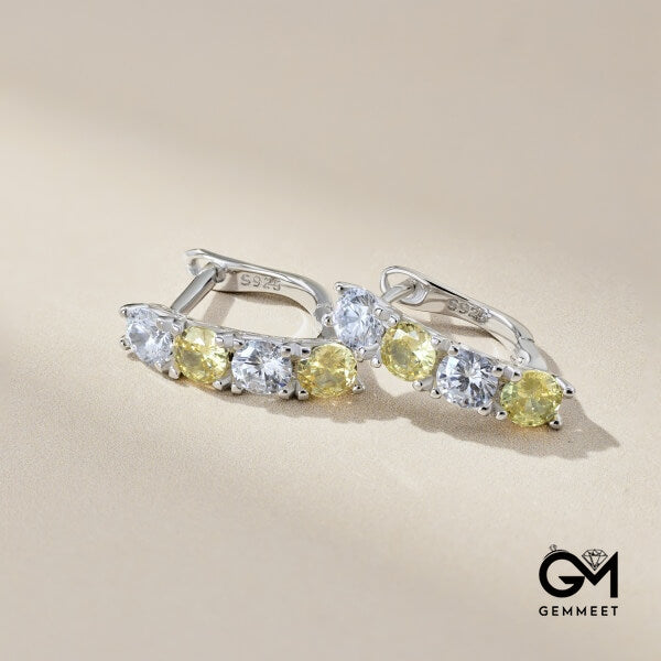 S925 Sterling Silver White Yellow Round Zircon Earrings