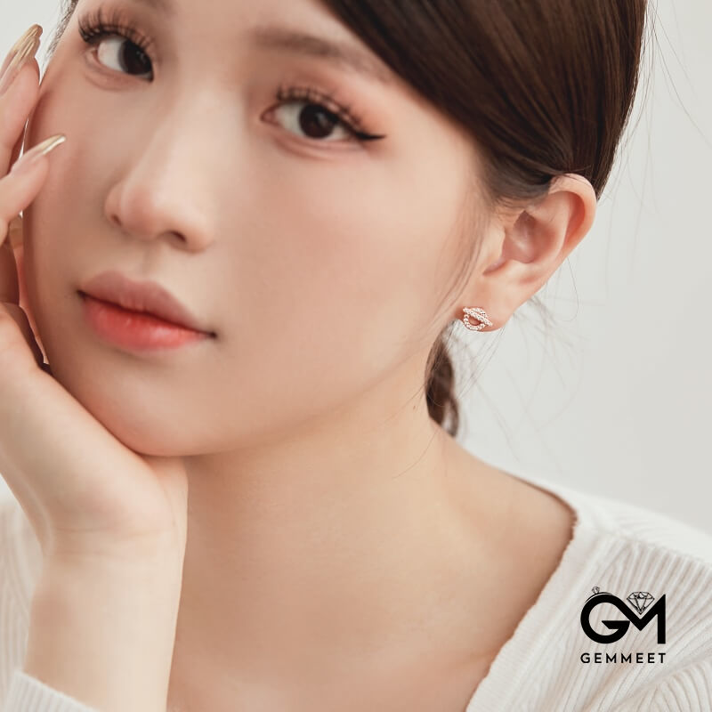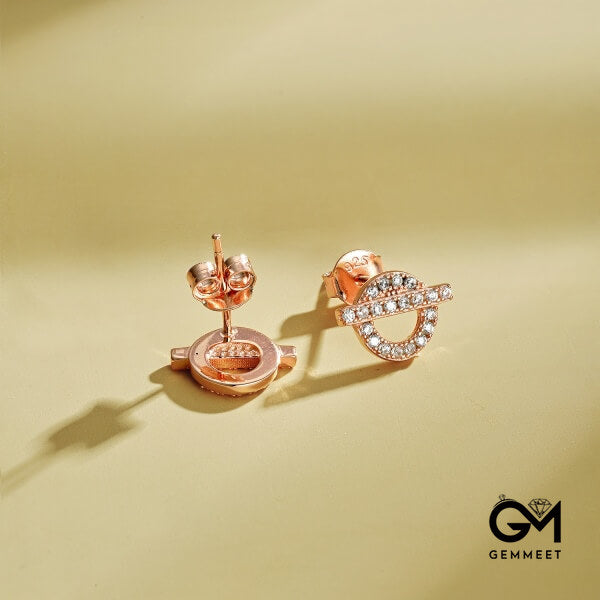 S925 Sterling Silver White Zircon Small Q Circle Earrings