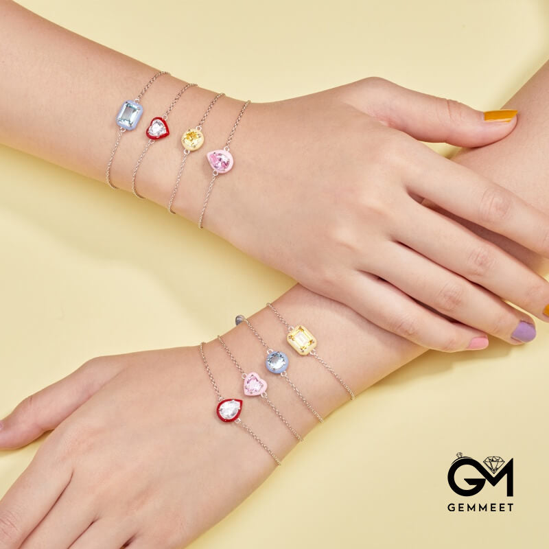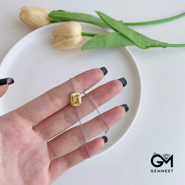 S925 Sterling Silver Yellow Rubber Drop Rectangular Zircon Bracelet
