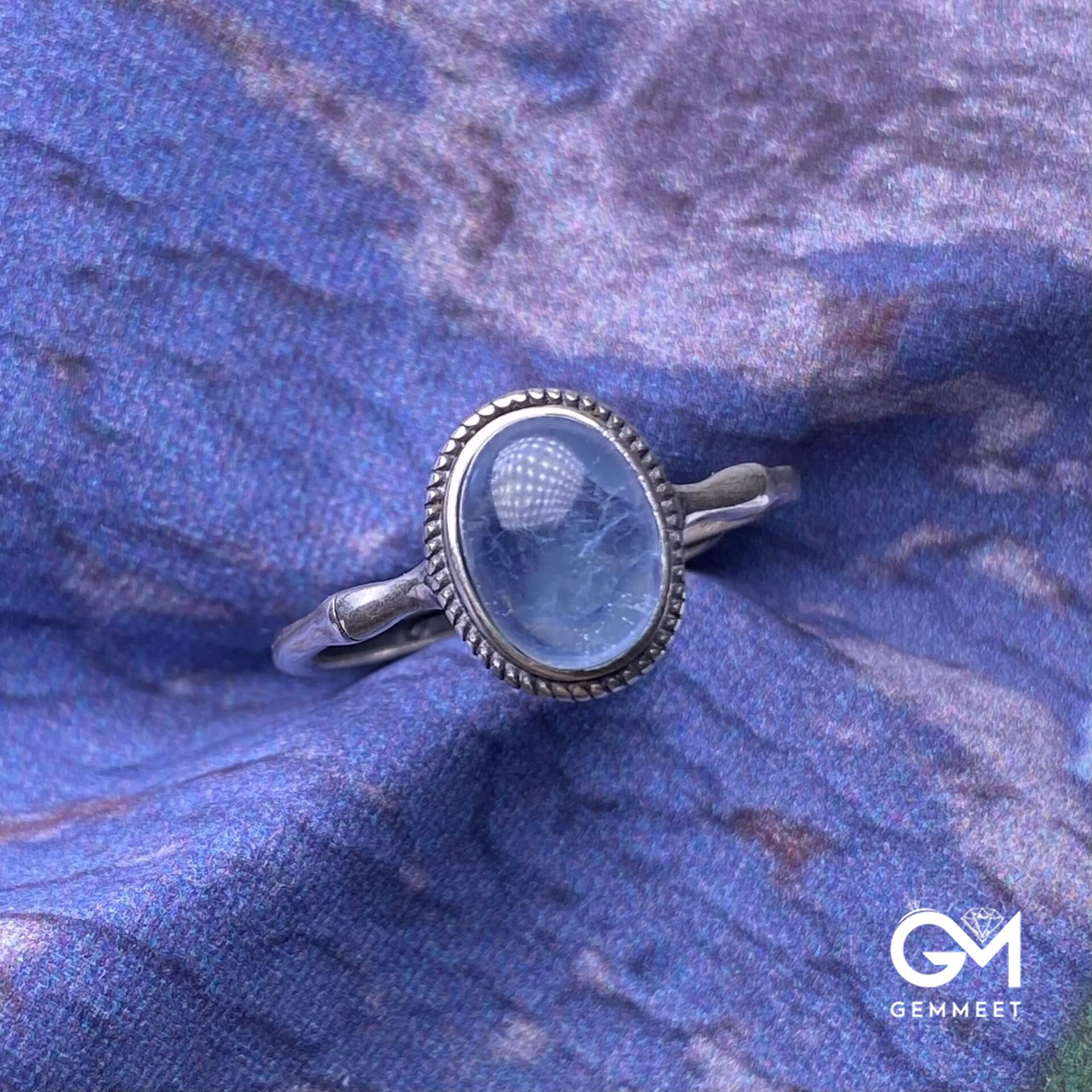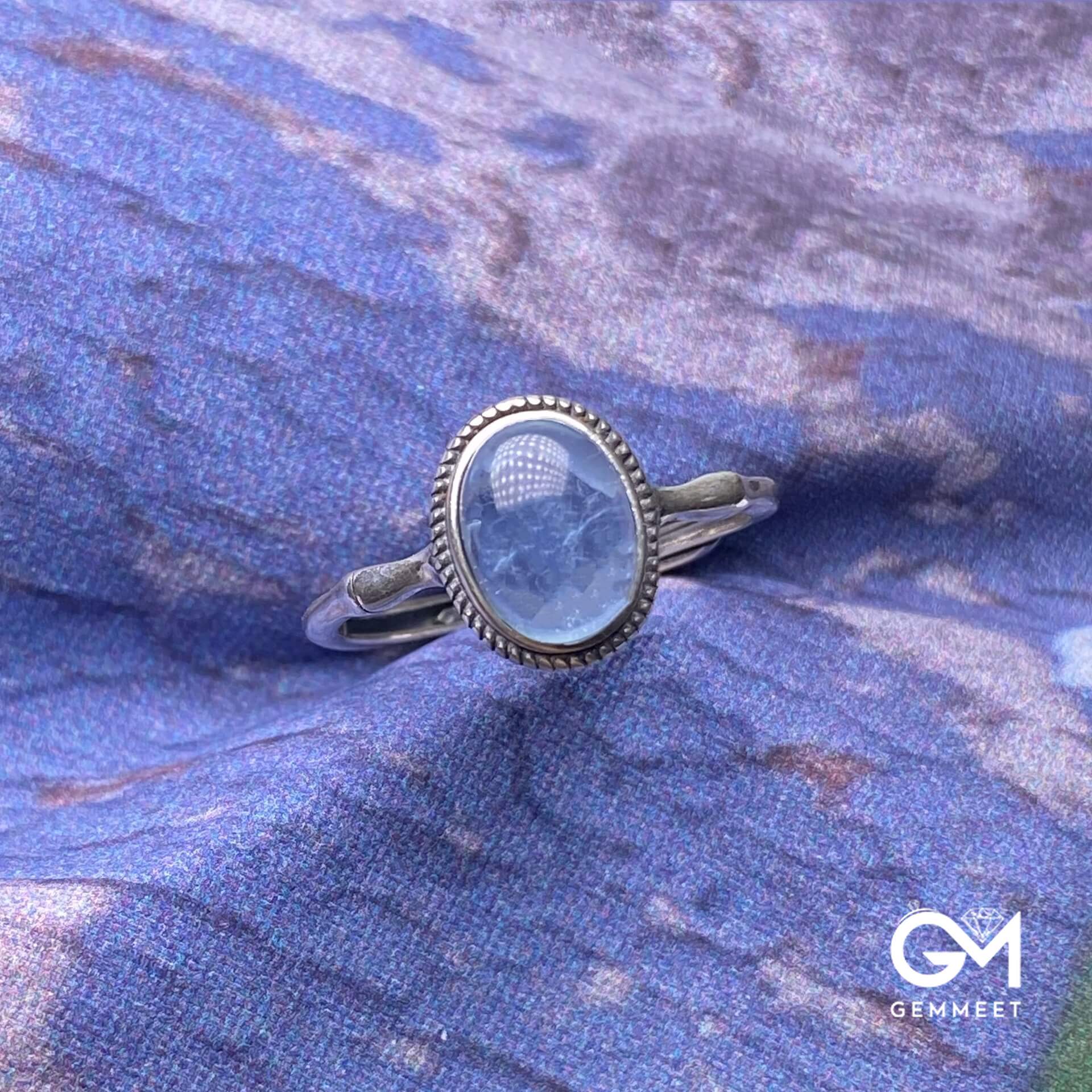 S925 Vintage Aquamarine Nepalese Bamboo Ring