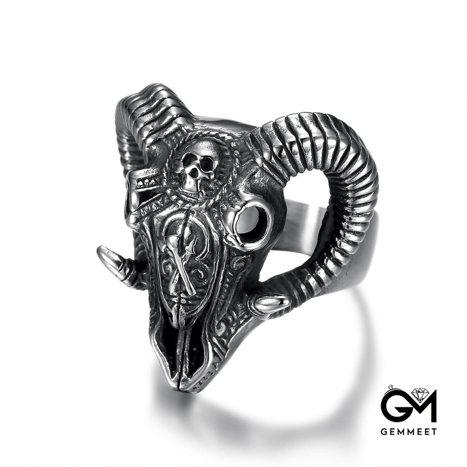 Satan Sheep's Head Titanium Steel Polished Men's Ring