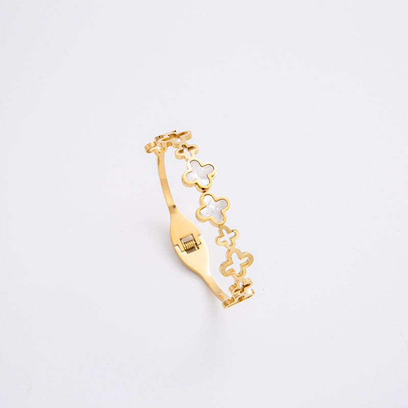 Titanium Steel Hollow Shell Four Leaf Clover Bracelet