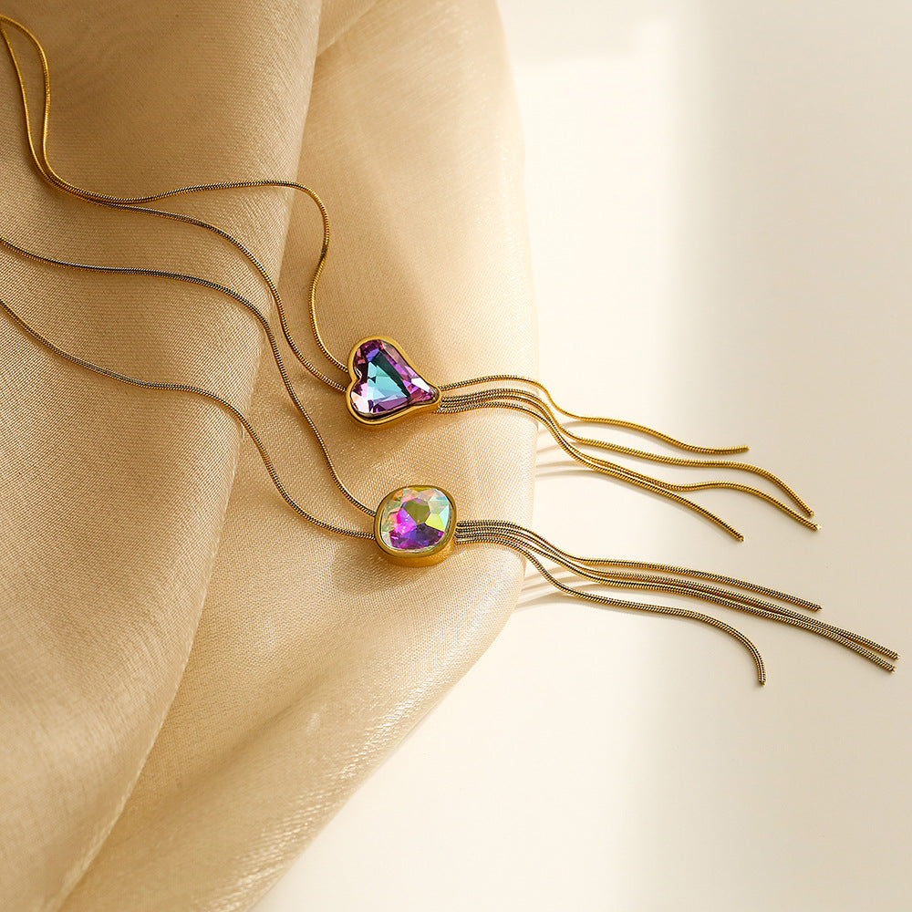 Simple Heart & Square Tassel Pendant Necklace