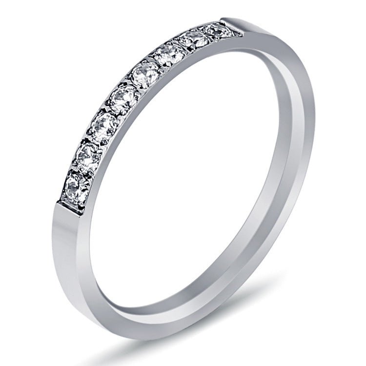 Single Row Zircon Titanium Steel Ring