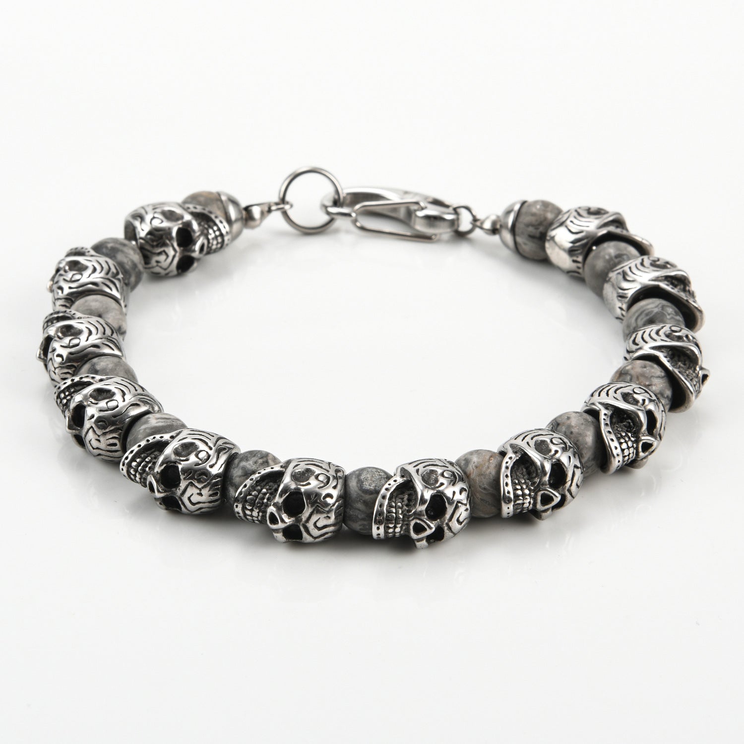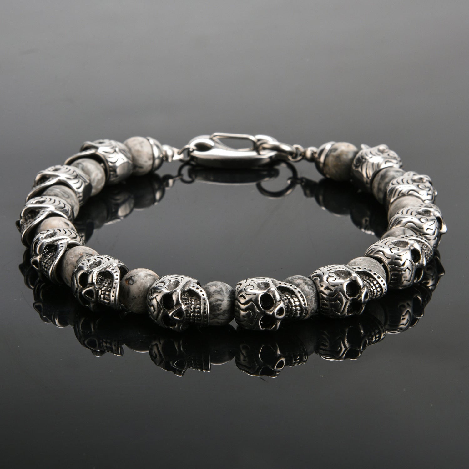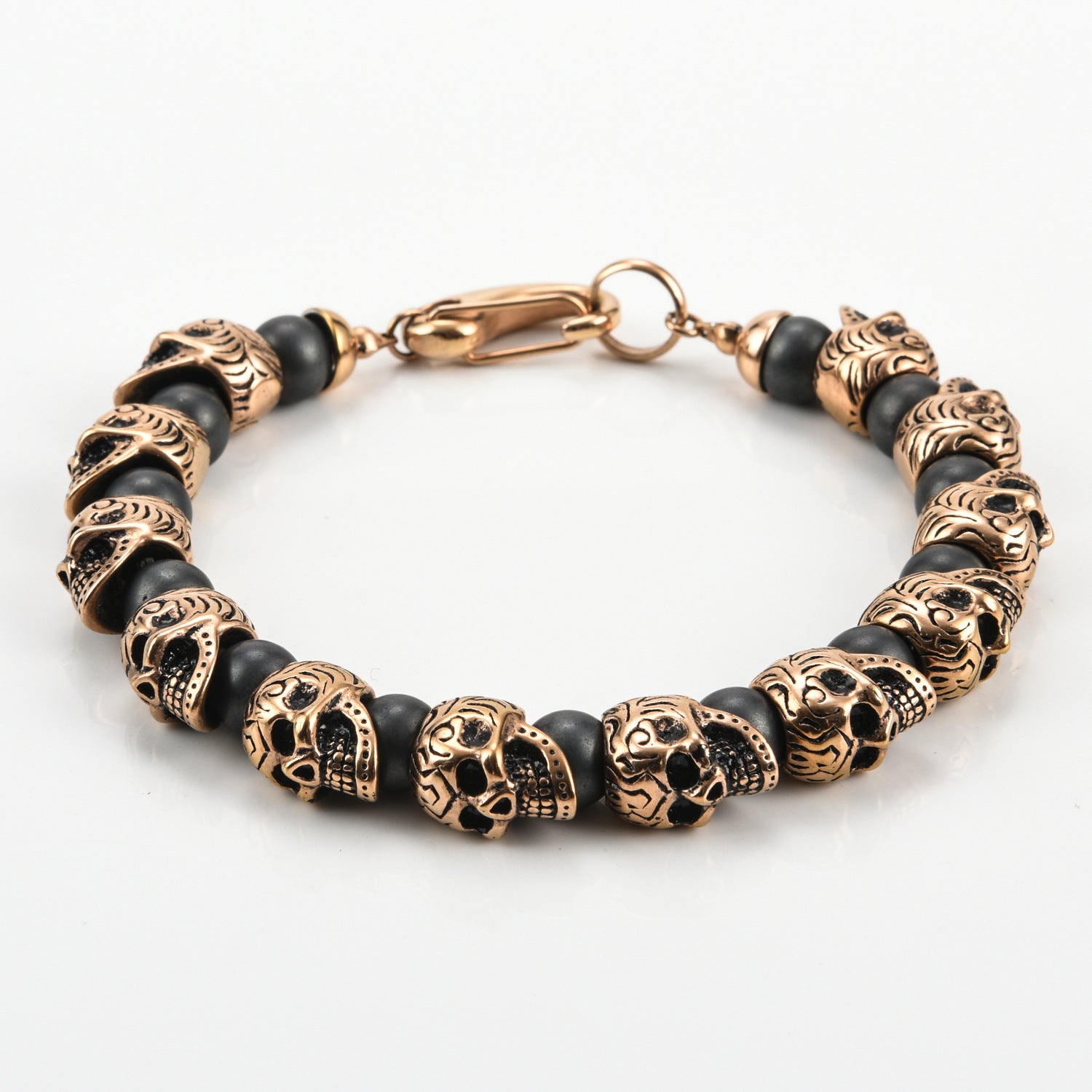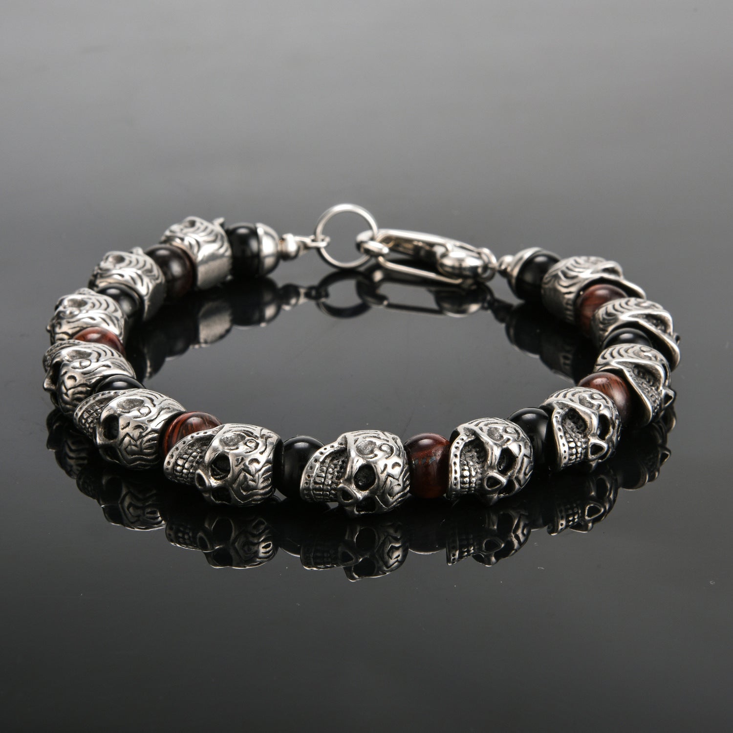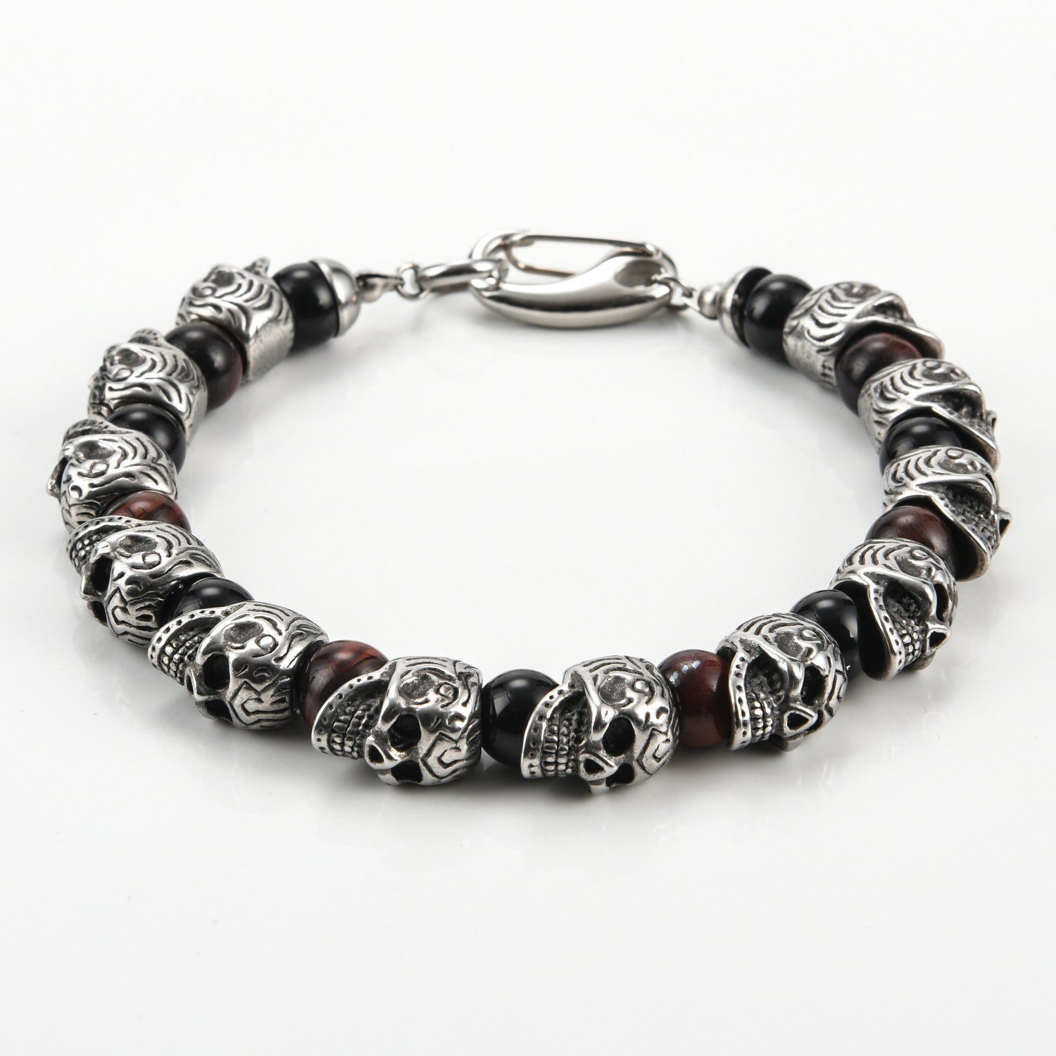 Skull Tiger Eye Stone Black Onyx Beaded Bracelet