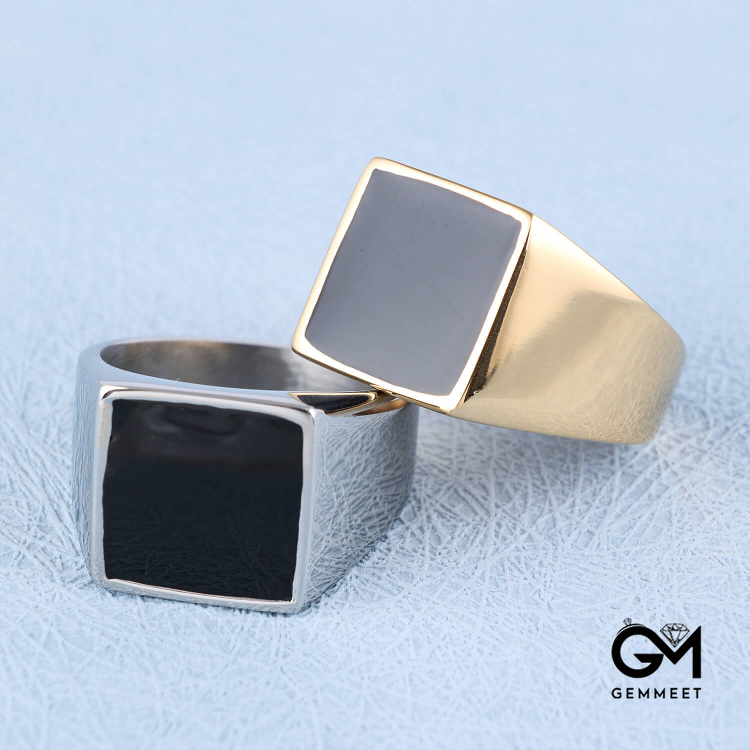 Square Drop Gel Enamel Gold Silver Square Titanium Steel Ring