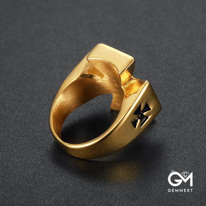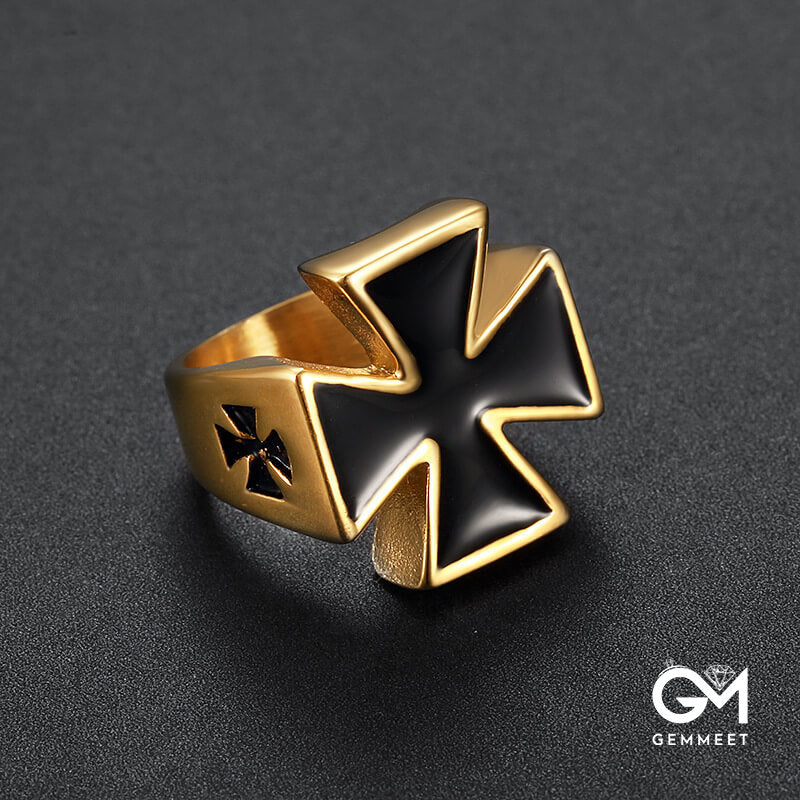 Stainless Steel Cross Drops Glue Black and White Gold Ring