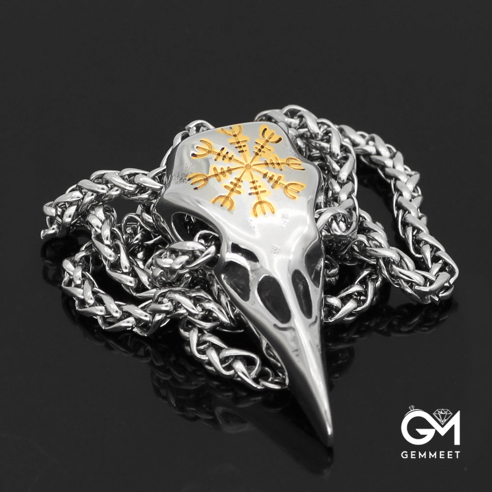 Stainless Steel Pirate Skull Hawk Necklace