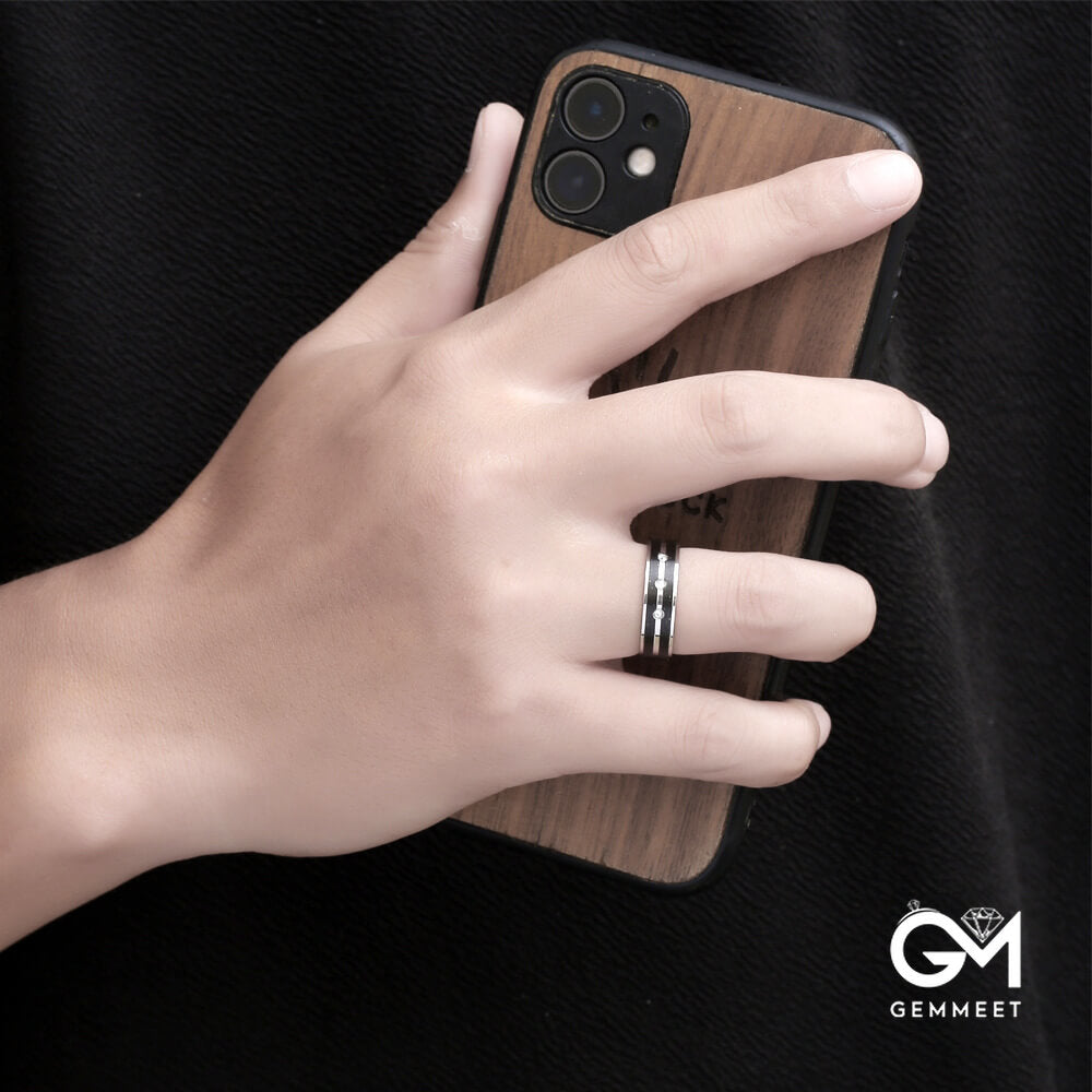 Stainless Steel Plated White Zircon Ring