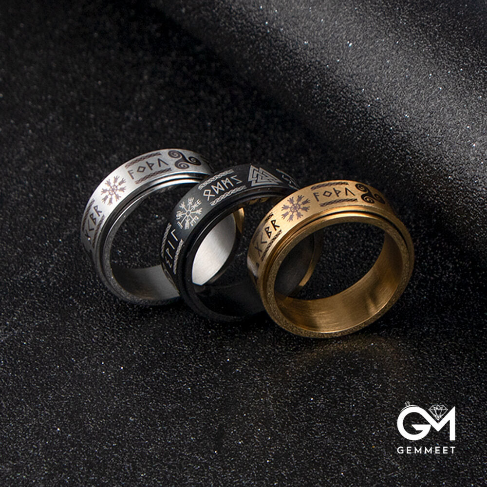 Stainless Steel Rune Symbol Viking Text Tri-color Ring