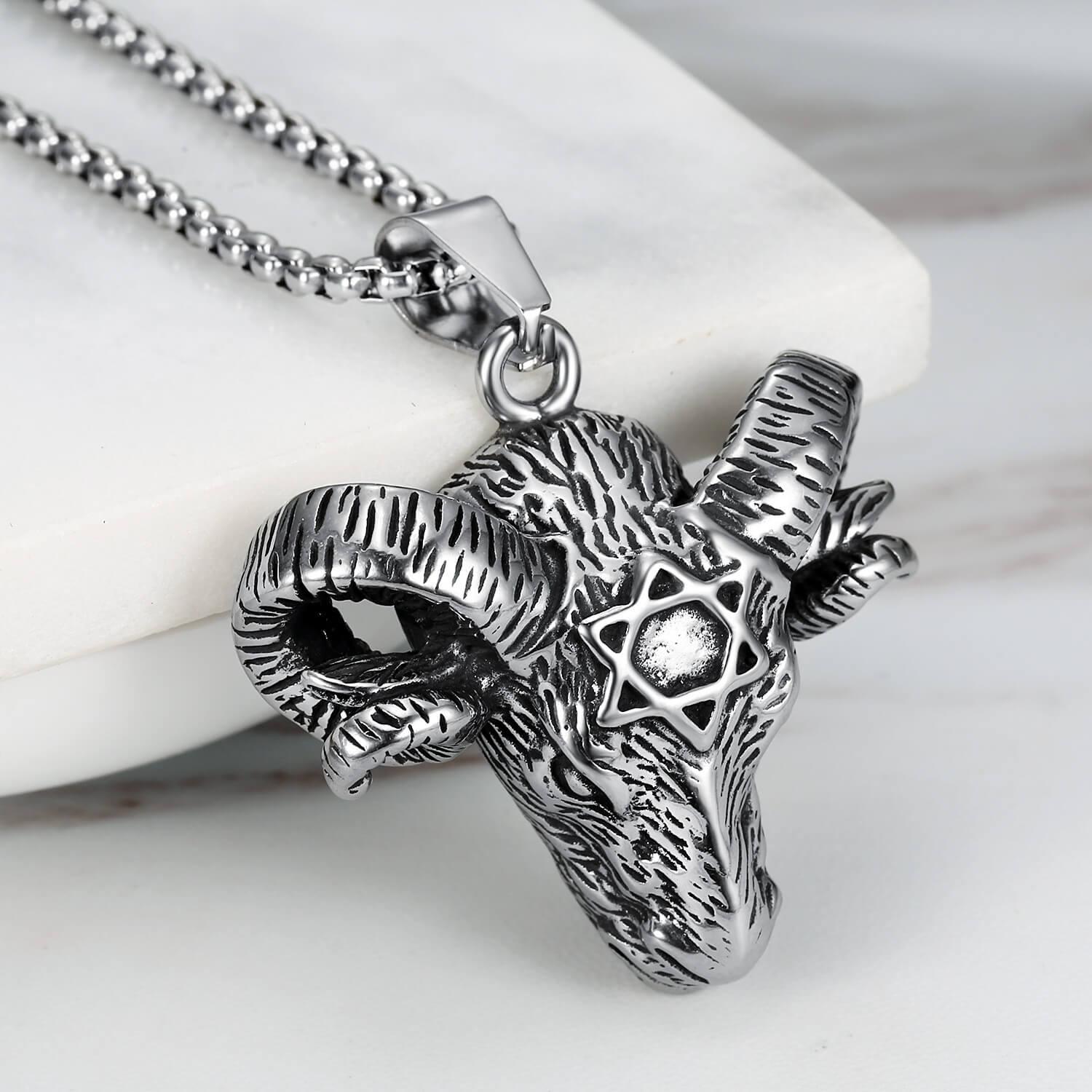 Stainless Steel Satanic Ram Hexagram Pendant Necklace