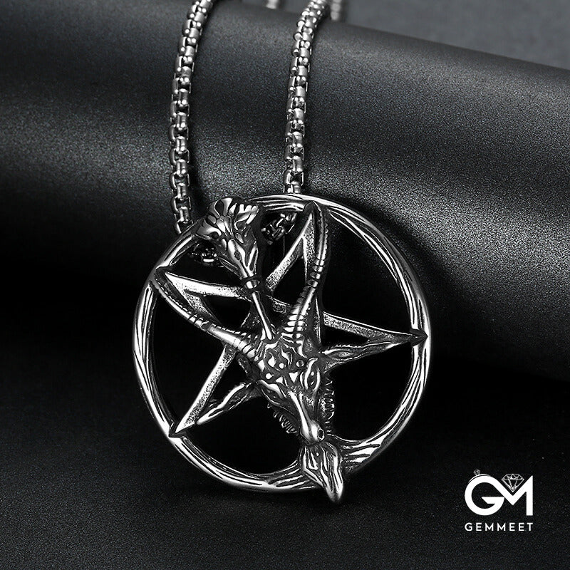 Stainless Steel Sheephead Pentagram Pendant Necklace