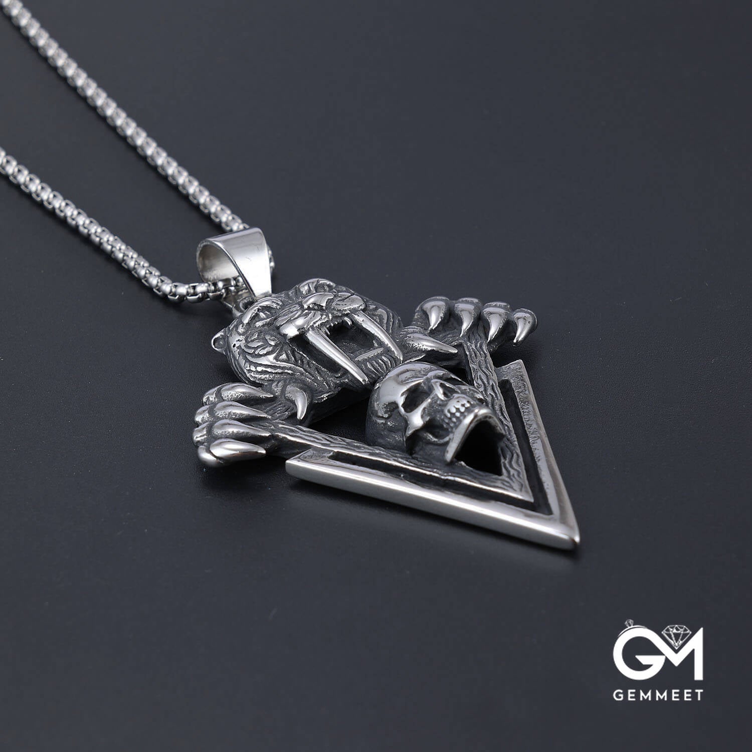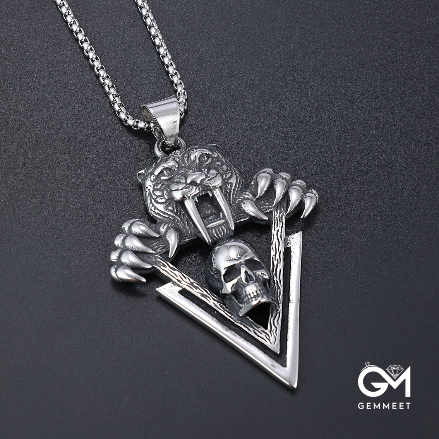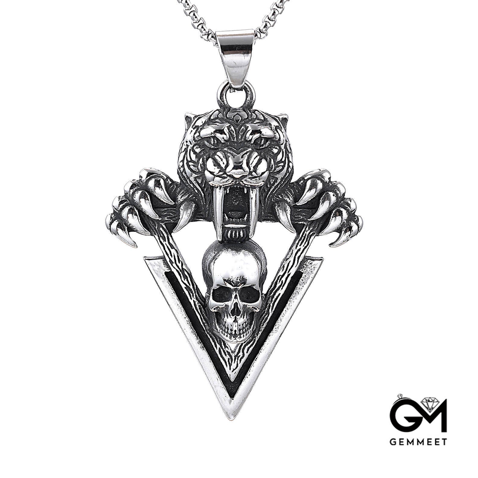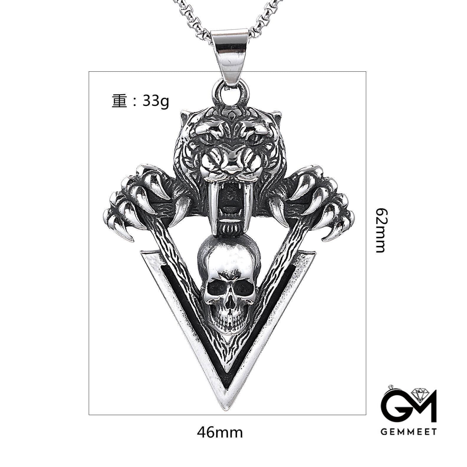 Stainless Steel Tiger Head Skull Pendant Necklace