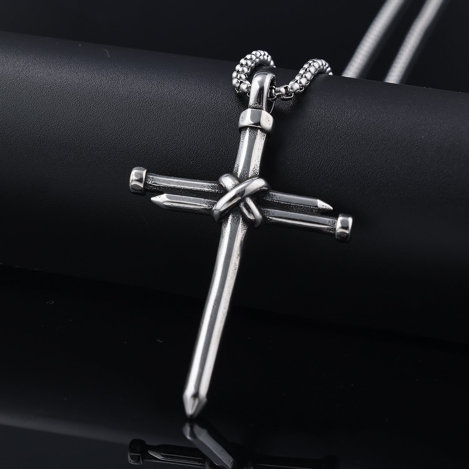 Stainless Steel Twisted Cross Pendant Necklace, Fashionable Simple Design, 23.6-inch Chain, Religious Christian Jewelry for Men and Women, 5.8cm x 3.6cm, Elegant Accessory