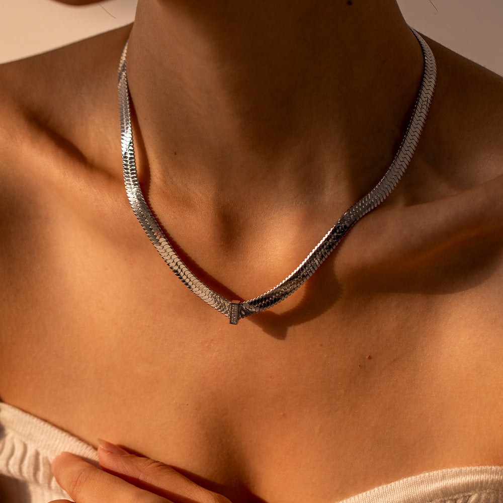 Stainless Steel White Gold Necklace with Zirconium